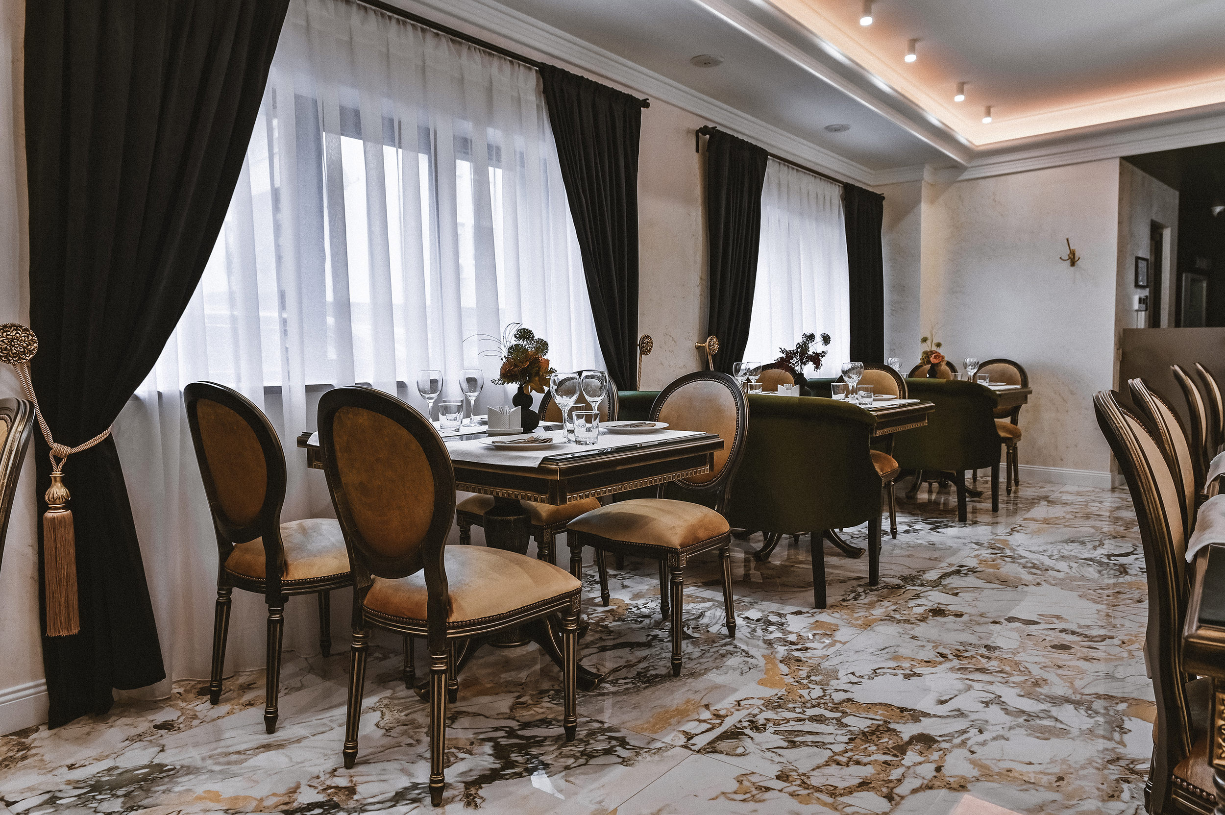 Na recepciji BARUT GARNI HOTELA sačekaće vas naše ljubazno osoblje. Prema zamisli dizajnera, klasika naglašena laganim teksturama odaje utisak teatralnosti.